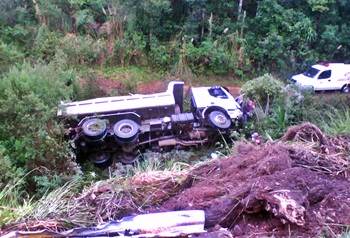 A caçamba placas MIJ-6864, seguia no sentido Rio das Antas para Caçador, quando o motorista perdeu o controle da direção, coludiu na proteção as margens da rodovia e em seguida capotou em uma ribanceira de aproximadamente 20 metros.
