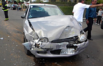 De acordo com informações, o ônibus de transporte escolar placas BWP-3641, dirigido por Paulo da Silva de 40 anos, seguia pela Fahdo Thomé sentido ao Parque das Araucárias, quando foi atingido pelo Ford Escort placas MAS-5590, que se conduzia pela Rua Florianópolis sentido Bairro Bom Jesus/Municípios.