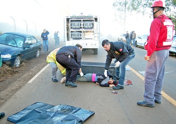 De acordo com informações, no primeiro acidente, a pedestre Donizete de Fátima Cordeiro, de 37 anos, atravessava a Rodovia Primo Tedesco, nas proximidades do Katódromo, quando foi atropelada pelo Ford Mondeo, placas LXG-5555 de Caçador. Segundo Adelino Castanheiro, 31 anos, condutor do veículo, havia muita neblina no momento do acidente. “Eu seguia sentido Tedesco/Berger e mulher atravessava a rua. Quando a vi, freie e tentei tirar para o acostamento, mas ela também tentou correr para o mesmo lado”, lembrou.