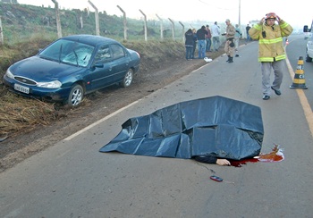 Com o impacto da batida, a vítima foi arremessada por cerca de 30 metros e sofreu várias fraturas, inclusive na cabeça, o que possivelmente causou sua morte. No momento em que os bombeiros voluntários chegaram ao local, ela já estava em óbito.