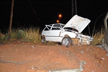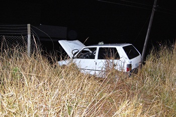 Já no período da noite, por volta das 20hrs nas proximidades da empresa Madecal, um Fiat Uno com placas de Caçador que seguia sentido Castelhano rodou na pista e só parou quando atingiu uma cerca de tela no terreno das futuras instalações da empresa Maxiplast.
