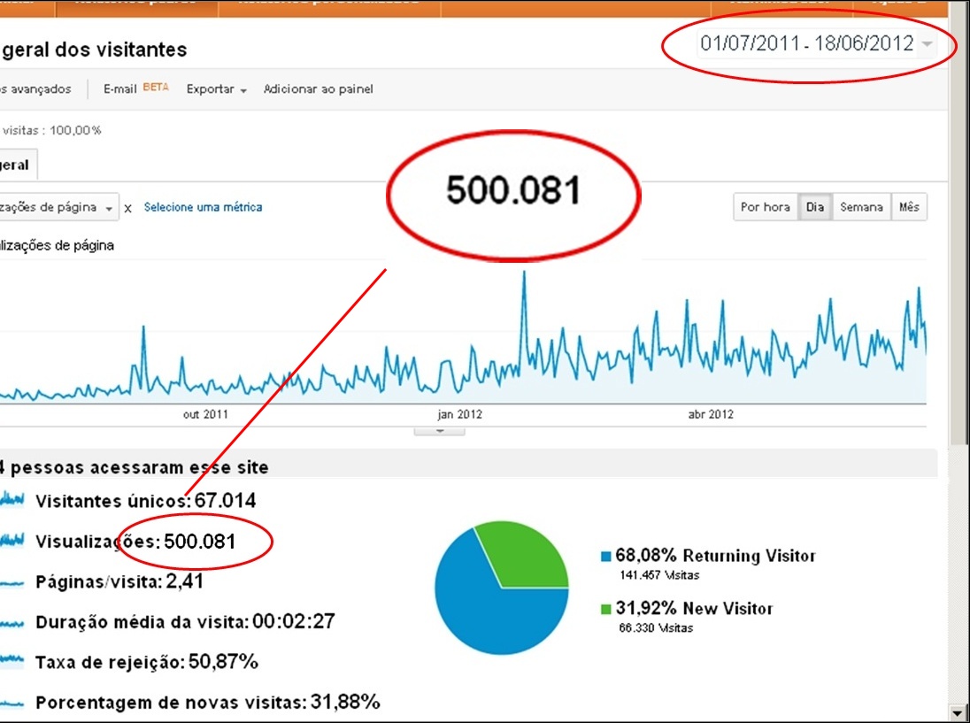 Faltando cerca de 12 dias para completar seu primeiro aniversário, o PortalCDR chegou a importante marca de 500 mil acessos. O número foi alcançado por volta do meio dia desta segunda-feira, 18 de junho de 2012.