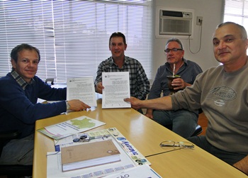 Para a assinatura dos dois contratos na SDR/Caçador estiveram presentes o secretário de Estado do Desenvolvimento Regional, Beto Cruz, o diretor geral da SDR, Francisco Stefanes, o presidente da Associação de Pecuaristas, Osni Caetano Júnior, e seu vice Joel Granemann de Mello.