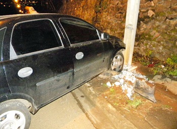 Um veículo bateu de frente em um poste na madrugada deste domingo, 8 de julho, na Rodovia Osvaldo Olsen saída para Calmon. A colisão aconteceu por volta das 3h30min. Mesmo com força da batida, que chegou a arrancar o poste do chão, ficando suspenso apenas pelos fios de energia elétrica, ninguém se feriu.
