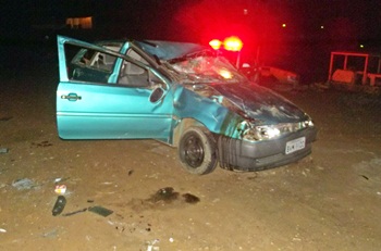 Com a violência da batida, o carro ainda caiu em um barranco de mais de oito metros, indo parar dentro do pátio das máquinas de prefeitura municipal e ficando totalmente destruído.