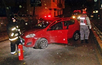 O Corpo de Bombeiros Voluntários foi acionado por moradores das proximidades, mas no momento em que as viaturas chegaram o motorista já não estava mais no local. Ele fugiu deixando o carro atravessado no meio da pista.