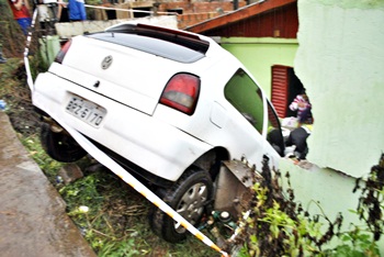 De acordo com informações, o VW Gol, placas BRZ-6170, de Caçador, conduzido por Jairo Littes Batista, de 27 anos, descia a Silvio Gioppo quando um veículo Monza de cor preta teria cortado sua a frente. Para evitar uma colisão, o motorista do Gol tentou desviar, mas acabou perdendo o controle e batendo forte contra o muro de uma casa.