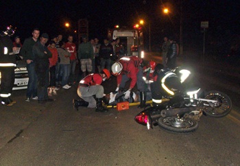 Com a batida o piloto da moto, acabou caindo e sofrendo ferimentos na face e perna direita. Uma feminina que estava na garupa da moto saiu ilesa. O condutor e os caronas do Kadett também não sofreram ferimentos.