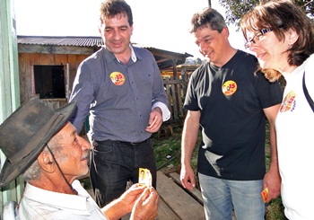 Ao entrar em uma residência da Vila Santa Terezinha, o candidato a prefeito Beto Comazzetto foi recebido pelo pedreiro e carpinteiro Sebastião Amaral (45 anos). O morador lembrou dos tempos da administração do ex-prefeito Onélio Menta (PMDB) a quem elogiou e disse ser o prefeito que mais fez pela Vila. Beto tem o apoio de Menta e isso deixou o morador feliz. “Na época do seu Onélio Menta tínhamos as crianças uniformizadas na escola, melhor acesso a educação e saúde, e vários eventos esportivos na cidade. Ele também deu início às escrituras dos terrenos onde hoje moramos. Sabemos que o Beto segue a mesma linha e acredito que é o melhor político para cuidar de Caçador. Sei o que ele já fez e o que pode fazer pela nossa cidade”, disse Sebastião.
