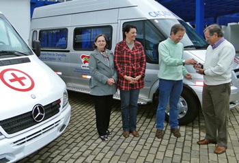 Do total, R$ 176 mil são recursos do Estado através da Secretaria da Saúde e contrapartida municipal em R$ 103 mil. Um veículo possui capacidade para 15 passageiros e o outro para 20. Ambos oferecem poltronas reclináveis, televisão, DVD e ar condicionado na frente e atrás. No ato da entrega também estiveram a secretária municipal de Saúde, Dinamar Gomes e a diretora municipal de Saúde, Janete Velasques.