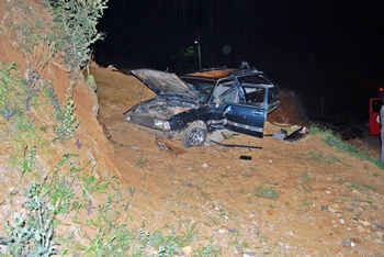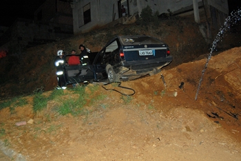Cerca de 100 metros depois de acessar a via, o carro saiu da pista, atingiu violentamente um barranco e capotou em seguida.