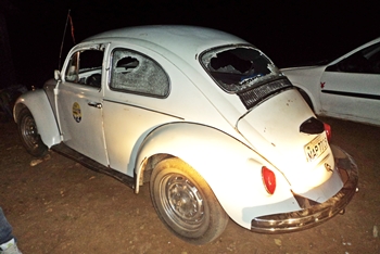 Não bastasse às lesões causadas nos dois cidadão, antes de se evadirem os elementos ainda depredaram o Fusca utilizando facões e pedras.