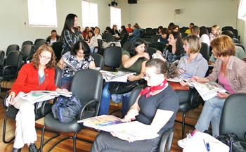 Professores representantes das escolas estaduais das regionais de Caçador, Videira, Joaçaba e Campos Novos, participaram nesta segunda-feira na Secretaria Regional de Caçador de capacitação sobre o Programa Jornal e Educação, uma parceria entre o Governo do Estado e Diário Catarinense, que atua há seis anos nas instituições de ensino de Santa Catarina, envolvendo anualmente cerca de 700 mil alunos, 30 mil educadores em mais de 1.300 unidades escolares.