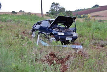 Além do motorista, outras duas pessoas estavam no carro, mas somente ele sofreu ferimentos nas costas e precisou ser encaminhado ao Pronto Socorro do Hospital Maicé para atendimentos médicos. O transporte foi realizado pelo Corpo de Bombeiros Voluntários. A Polícia Militar esteve no local, registrou o fato e providenciou a retirada do carro.