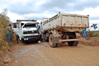 De acordo com informações, outro caminhão teria passado momentos antes e formado uma grande nuvem de poeira, diminuindo a visibilidade de um dos condutores, que acabou invadindo o lado contrário e provocando a colisão.