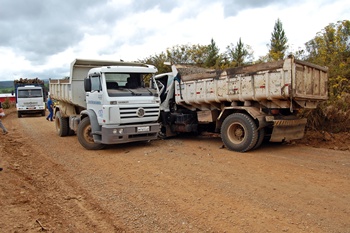 Um acidente na manhã desta quinta-feira, dia 8, envolvendo dois caminhões caçamba da prefeitura municipal de Caçador deixou duas pessoas feridas. A colisão frontal aconteceu na Rodovia Municipal Avelino Mandelli, proximidades do Aeroporto municipal, por volta das 10 horas.