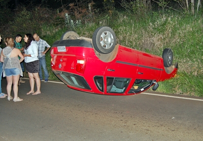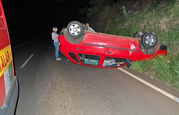 Um veículo capotou na madrugada desta segunda-feira, dia 12, na SC-303, próximo á divisa entre os municípios de Caçador e Rio das Antas. O acidente aconteceu por volta das 0h30min e envolveu o veículo VW Gol placas MEP-7469 que se conduzia sentido a Caçador.