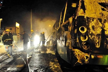 No início da noite, criminosos incendiaram mais um ônibus em Florianópolis. O alvo desta vez foi um coletivo que se deslocava no Bairro Ingleses, Norte da Ilha.