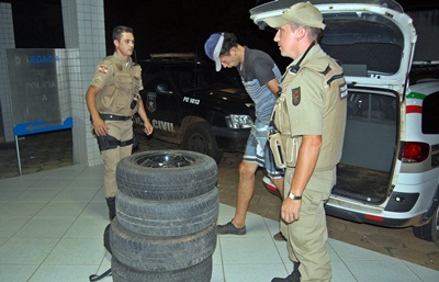 De acordo com informações, por volta das 0h30min, os cinco indivíduos adentraram ao pátio de uma revenda de veículos na Avenida Senador Salgado Filho e conseguiram arrombar a porta de uma repartição onde ficavam guardados vários objetos. Após adentrarem ao local, os acusados teriam retirado nove pneus e três bateriam e se preparavam para sair, momento em que foram surpreendidos por um vizinho do estabelecimento.