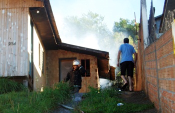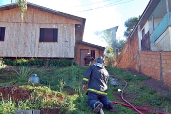 O fogo atingiu a parte de trás de uma casa de madeira na Rua Olívio Abatti. Cerca de 900 litros de água foram utilizados para combater as chamas
