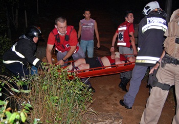 O Corpo de Bombeiros Voluntários de Caçador foi acionado e imediatamente deslocou equipes de socorro até o local. Chegando lá as guarnições se depararam com dois masculinos tentando alcançar a mulher que já havia descido cerca de trinta metros rio abaixo. Apesar de ter chovido bastante nos últimos dias, o rio não estava tão cheio e por sorte a feminina acabou ficando presa ás estruturas de uma antiga ponte que havia no local.