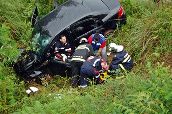 Populares que passavam pelo rodovia acionaram os Bombeiros Voluntários que foram ao local e, com o auxílio do SAMU prestaram socorro ao motorista. Ele ficou preso entre o painel e o acento do carro.