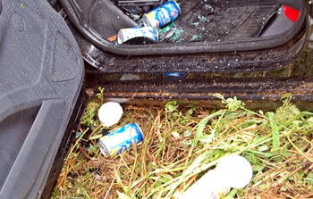 Além de não estar utilizando o cinto de segurança, suspeita-se que o condutor estava embriagado, pois no interior do carro havia duas caixas de gelo com diversas latas de bebida.