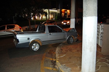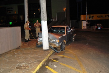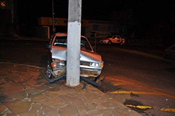 Segundo informações Jocimar Foscarini, 43 anos, conduzia a VW Saveiro placas LYU-0420, de Caçador pela Rua Anita Garibaldi e tinha intensão de convergir em direção a 25 de março, mas não venceu dobrar a esquina e acabou colidindo de frente no poste.