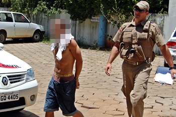 O infrator estava cavando um buraco em uma das paredes do quarto. Ele foi surpreendido e em flagrante e encaminhado a delegacia para prestar depoimento