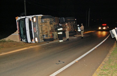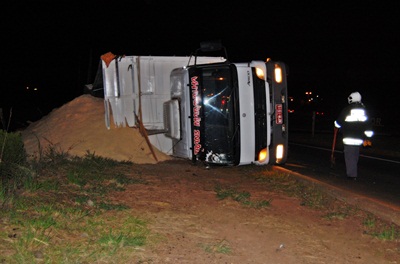 Apesar do susto o motorista não se feriu. A carga ficou espalhada na lateral da via. Os bombeiros voluntários foram ao local por prevenção até a chegada da Polícia Militar.