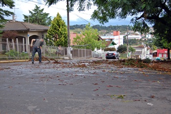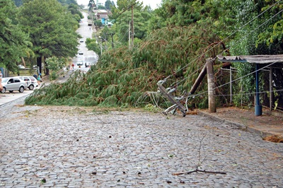 Na Rua Henrique Júlio Berger, proximidades da empresa Viposa, duas árvores caíram sobre a rede elétrica, causando a quebra dos postes e o rompimento dos cabos de transmissão. Na rua atrás da empresa Sincol, uma árvore também caiu e bloqueou a passagem dos veículos. Quedas de árvores ainda foram registrados nas Ruas Curitibanos e 13 de Maio e Avenida Santa Catarina.