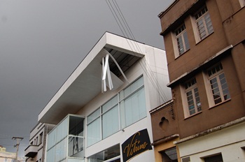 No Bairro Bello, grandes recipientes de depósito de combustíveis que estavam no pátio de um posto em construção na Rua 1º de Maio foram arrastados com a força dos ventos, atravessando vários terrenos particulares.