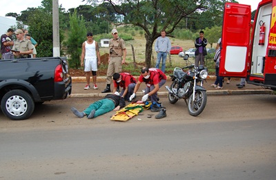 Com o impacto o motociclista caiu e sofreu ferimentos, tendo de ser conduzido ao Pronto Socorro do Hospital Maicé. Viaturas do Corpo de Bombeiros e do SAMU compareceram ao local para prestar o atendimento.