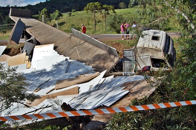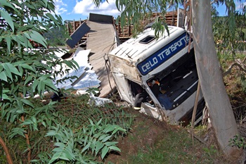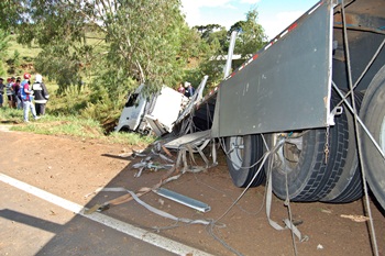 O condutor identificado como Valdelir Petry, foi arremessado para fora da cabine e acabou sendo esmagado e ficou em preso em baixo do veículo.