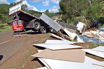 De acordo com informações, a carreta Volvo com placas de Santa Cecília carregada de chapas de MDF seguia sentido Lebon Régis, quando o motorista perdeu o controle em na curva e saiu da pista e tombando as margens da rodovia.