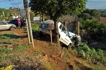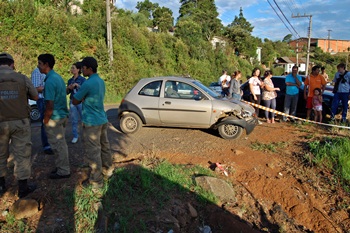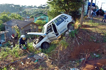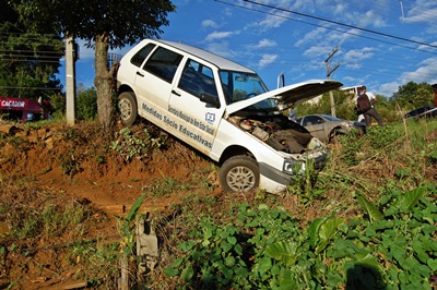 Sem ter como parar o veículo, Adilson Cavalheiro do Amaral acabou colidindo com o Ford Ka na traseira do Uno, que ficou sem controle e foi parar em um barranco, ficando suspenso apenas por uma árvore.