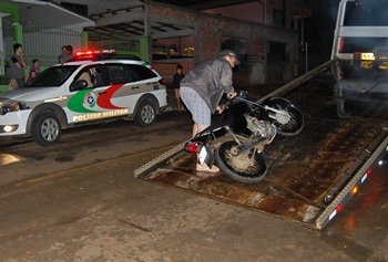 Assim que os meliantes saíram, o proprietário acionou a Polícia Militar, que por sua vez empenhou várias viaturas na busca pelos criminosos. Minutos depois de ter sido informada do assalto, a Central de Operações da Polícia Militar (Copom) recebeu uma nova ligação, desta vez de um morador da Rua Raulino Ribeiro dos Santos, o qual informação que dois jovens haviam caído de moto ao passarem por uma lombada.