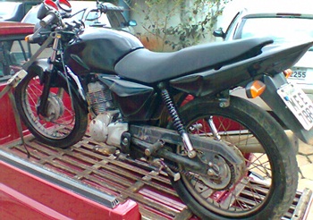 A motocicleta que os suspeitos estavam utilizando também era produto de furto. Ela estava com a placa adulterada a havia sido pintada de preto. Ela foi furtada no Berger no dia 9 de março e sua cor original é vermelha.