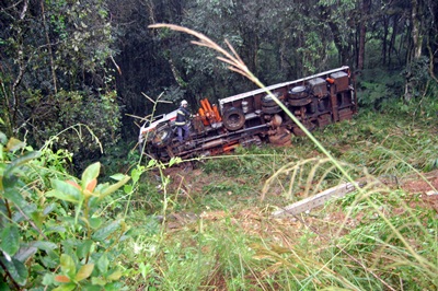 Ainda segundo o motorista, o caminhão tombou pelo menos duas vezes depois de sair da pista.
