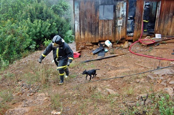 Sem ter o que fazer as duas pessoas saíram rapidamente da casa e acionaram os Bombeiros Voluntários de Caçador, que foram ao local e controlaram o fogo. Quase todos os cômodos foram atingidos. Cerca de 2 mil litros de água foram utilizados para conter as chamas e fazer o rescaldo.