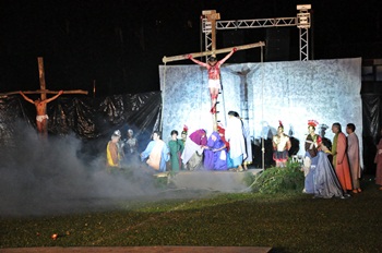 Na noite de Sexta-feira Santa (29) o Estádio Municipal Dr. Carlos Alberto da Costa Neves recebeu Caçador e região para prestigiar a encenação da morte e ressurreição de Cristo. Realizada pela Prefeitura Municipal de Caçador, através da Fundação Municipal de Cultura em parceria com o Grupo Temporá a décima edição da “Paixão de Cristo – O Filho de Deus entre nós” foi sucesso de público.
