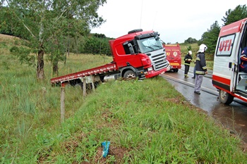 De acordo com informações, Rodrigo seguia com o caminhão no sentido Lebon Régis/Caçador, quando perdeu o controle da direção e saiu da pista, colidindo contra o ponto de ônibus e caindo com a parte traseira em um barranco na lateral da via.
