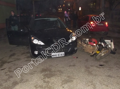 Um Peugeot, um Ford KA e uma motocicleta YBR 125 se envolveram na colisão. O piloto da moto teve suspeita de fratura em uma das pernas