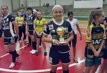 A pivô Elisa foi uma das grandes sensações da temporada passada. Durante a temporada, a goleadora caçadorense marcou 71 gols em 39 jogos, com média de 1,82 por partida, a maior do Estado em todas as categorias, superando a segunda colocada Renata, da Female/Chapecó.
