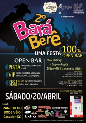 Em 2012 a Festa agitou Caçador e superou expectativas, para 2013 o 2º Bará Berê será uma das melhores edições Open Bar de todo o Brasil.