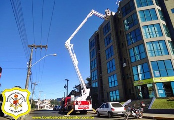 Na manhã desta quarta-feira 08, os Bombeiros Voluntários de Caçador foram acionados para verificar a possibilidade de auxiliar na retirada de alguns suportes de ar-condicionado de um prédio localizado na Rua Panamá, Bairro Reunidas.