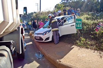 Um acidente de trânsito na Rodovia Honorino Moro na tarde desta quinta-feira, 9 de maio, deixou uma pessoa ferida. Um Ford Fiesta com placas de Caçador, conduzido por Ângela Aparecida de Andrade, 46 anos, teria cortado a frente de um caminhão Ford Cargo também de Caçador dirigido por Pedro Littes de 63 anos.