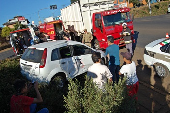 O caminhão que seguia pela Honorino Moro sentido Trevo de Rio das Antas atingiu em cheio a lateral do Fiesta lançando-o contra um barranco do lado direito da via. Com o impacto, um menino de 11 anos que estava no acento do carona do Fiesta sofreu ferimentos e precisou ser socorrido pelos Bombeiros Voluntários de Caçador. Ele foi encaminhado ao Pronto Socorro do Hospital Maicé para receber atendimento médico.