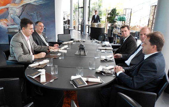 O deputado Gelson Merisio e governador Raimundo Colombo se reuniram, nesta quarta-feira (15), com dirigentes da empresa Red Bull, em Salzburg, na Áustria. No encontro, realizado no Hangar-7, localizado junto ao aeroporto da cidade, Colombo colocou o Estado à disposição do presidente da multinacional no Brasil, Minás Vourodimos, e do diretor Clóvis Amorim, para a instalação de uma fábrica da Red Bull em Santa Catarina. Merisio está representando a Assembleia Legislativa em missão oficial à Europa e já visitou, nesta segunda-feira, a diretoria do BMW Group, montadora que realizará investimentos no Estado.