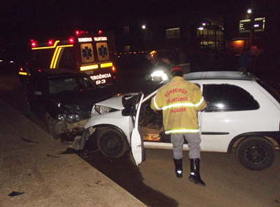 Uma colisão envolvendo dois carros na noite desta sexta-feira, 26, resultou em três pessoas feridas. O acidente aconteceu na Rua Antonio Bombassaro, no Bairro Martello, proximidades da Empresa Corfio.